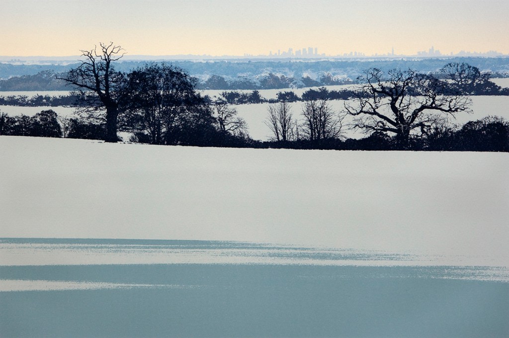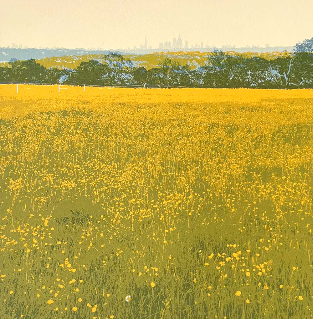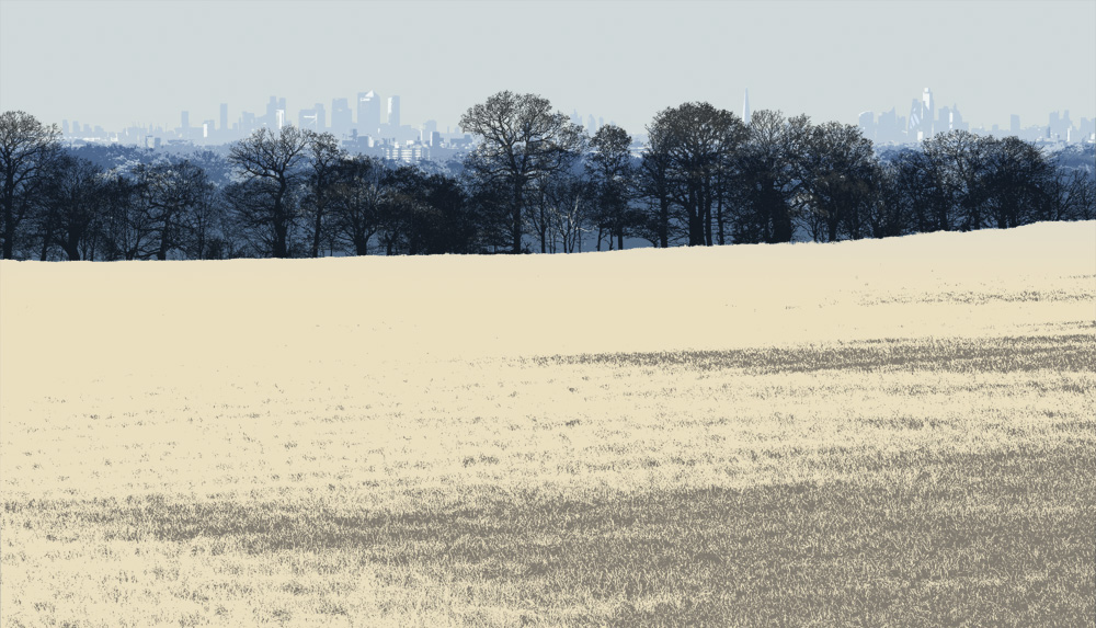 I’ll be showing this new screenprint on the East London Printmakers stand this year. It’s a view of London taken from Dark Lane, Warley, Essex which involved a long frustrating walk trying to find a spot where the view wasn’t obscured by the tree canopy. Eventually we realised the best view was literally from the road – no walking necessary.